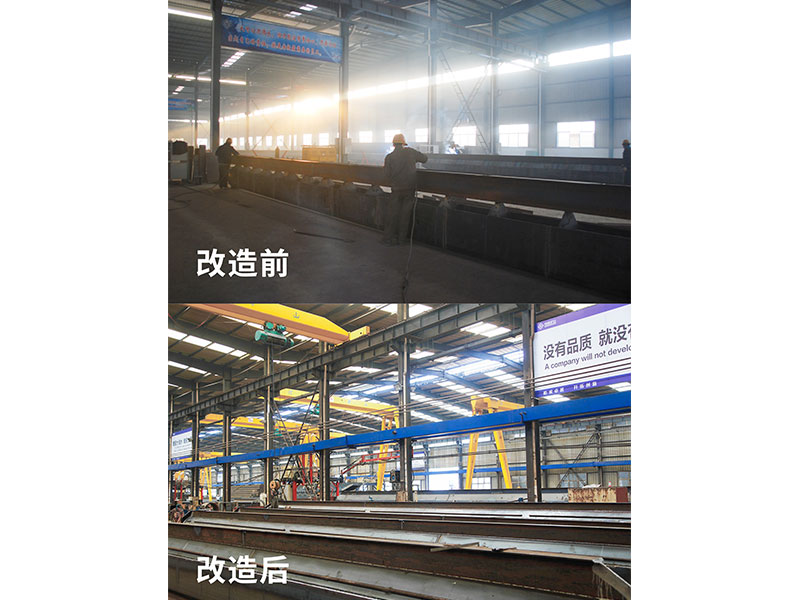 2013年,公司與北京起重運輸機械設計研究院合作,聘請德國起重機專家,根據(jù)人體工程學及工件流程,完成了“單梁起重機柔性化生產(chǎn)線項目”。